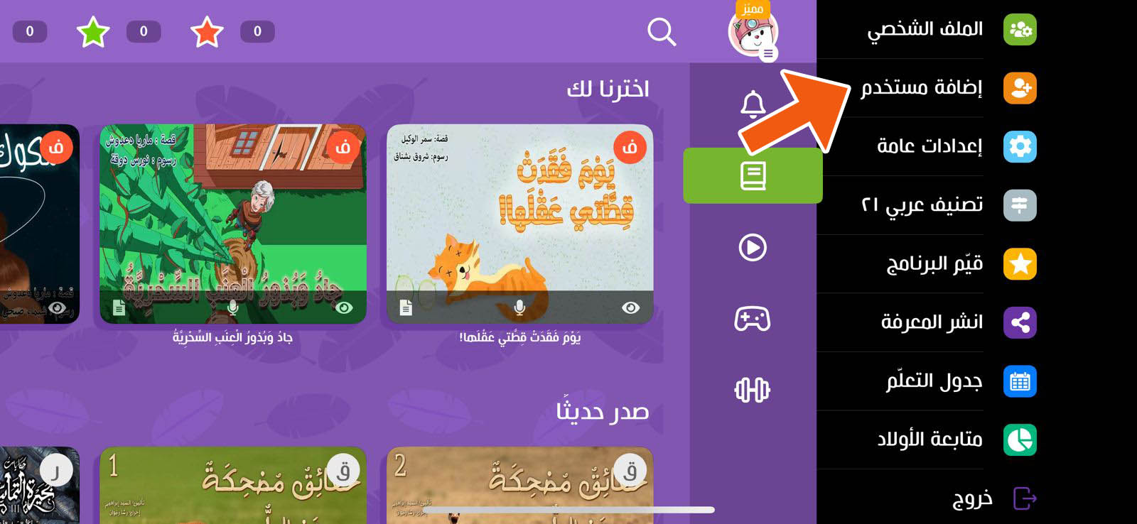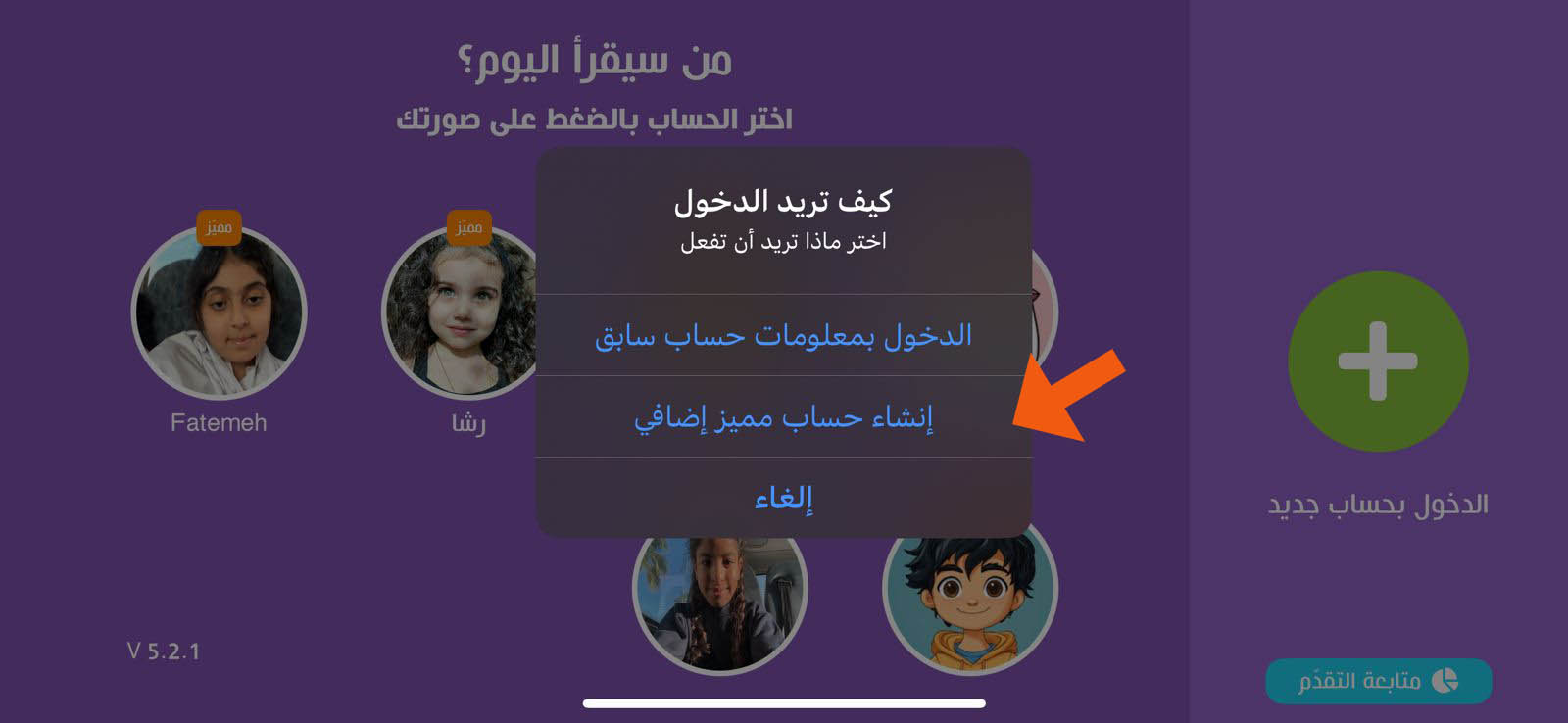 إذا كنت قد اشتريت اشتراكك من التطبيق، فيمكنك إضافة الحسابات من التطبيق فقط. يمكنك إضافة مستخدم بطريقتين من الصفحة الرئيسية للدخول أو من صفحة الحساب: