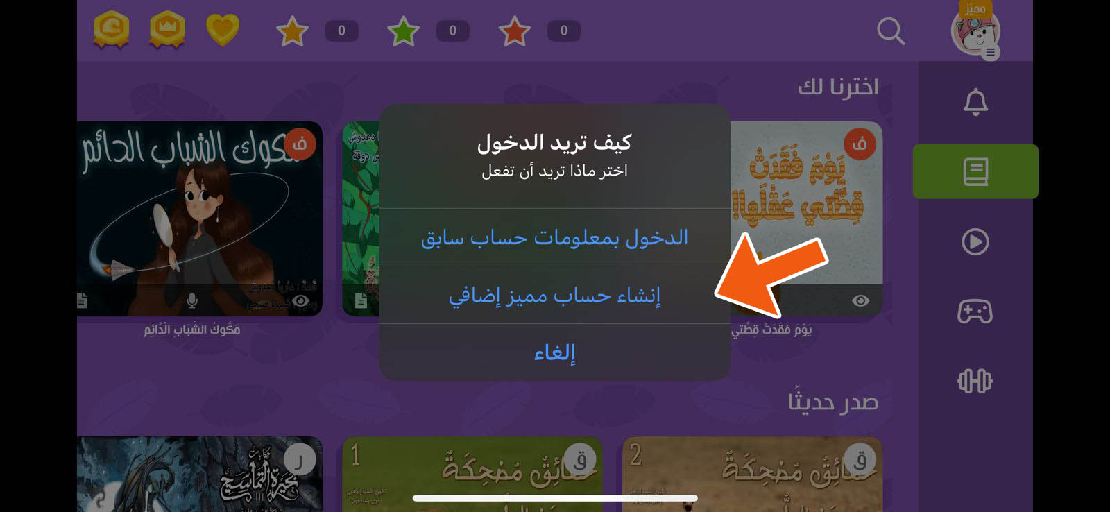 يمكنك إنشاء الحساب بعدها تأكد من ملء العمر الصحيح لأنه مهم في اختيار المحتوى الذي سيعرض للمتعلّم