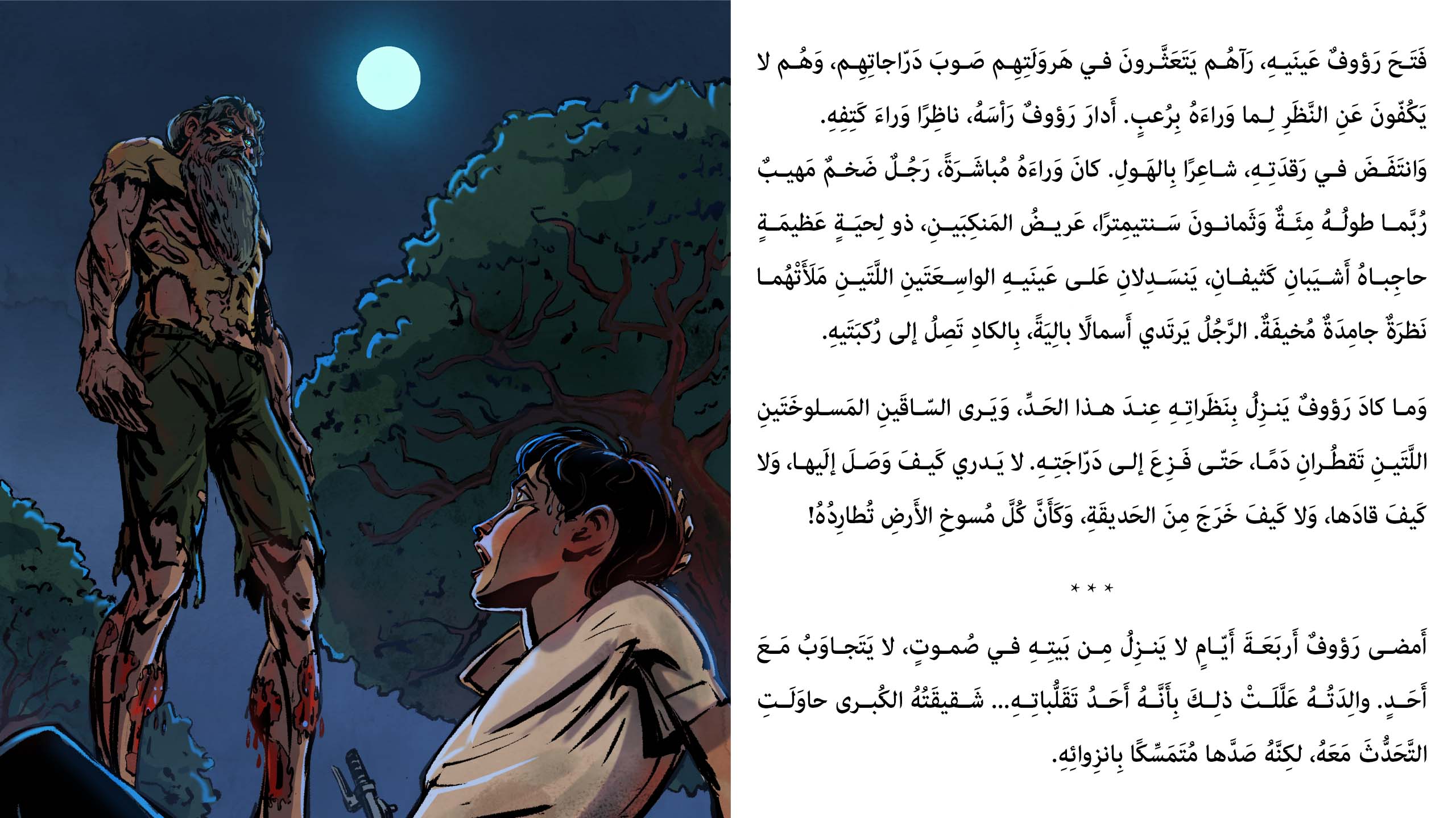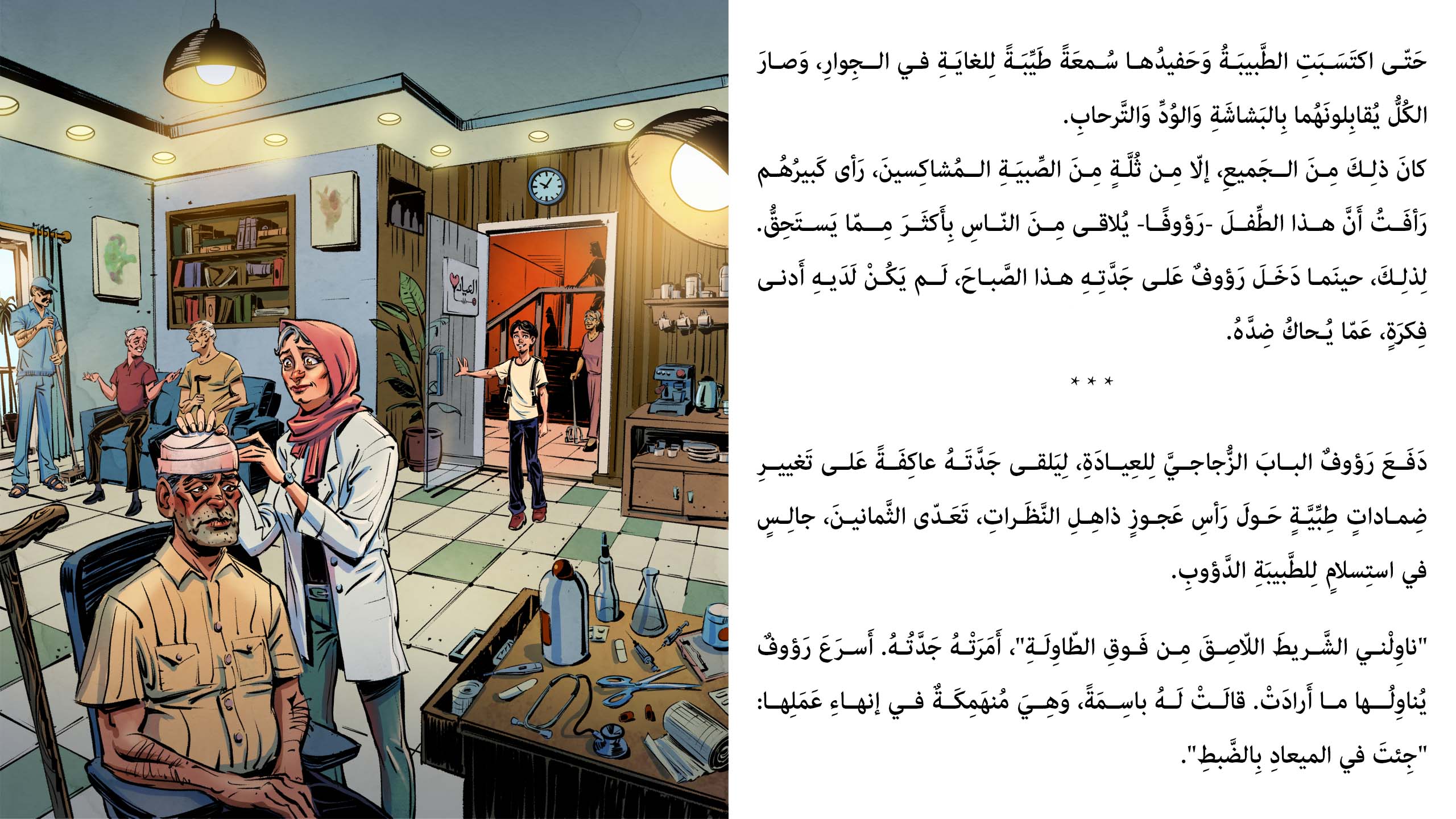 في عيادةٍ مجانيةٍ تقودها جدةٌ طبيبة، يتحدى رؤوف تنمّر الصبية وأساطير “أبي رجلٍ مسلوخةٍ” ليكتشف حقيقةً صادمة… مغامرة إنسانية تجمع الرعب والرحمة والصداقة.