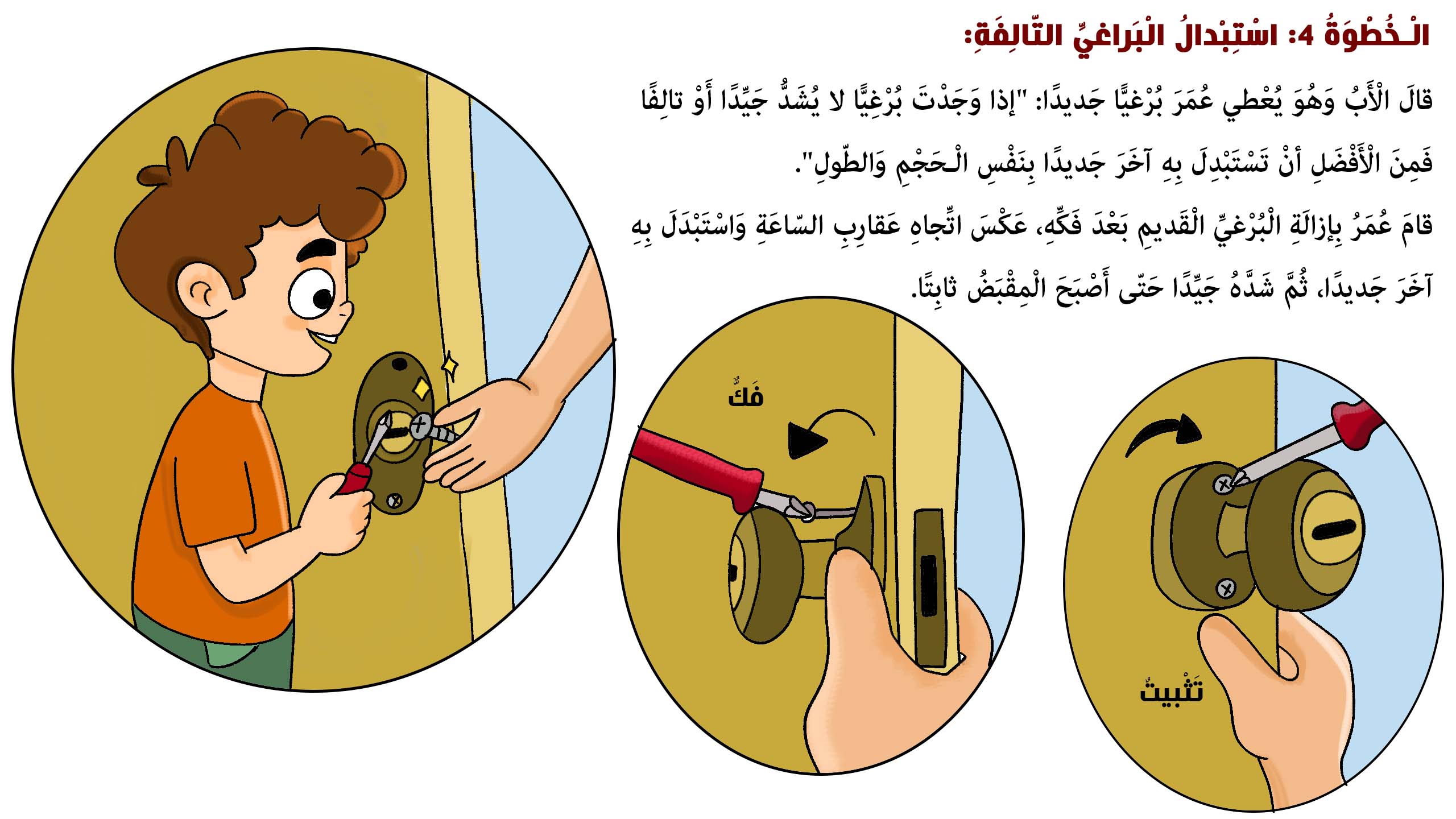أَبي! كَيْفَ أُصْلِحُ هذا؟ (مِقْبَضُ الْبابِ)