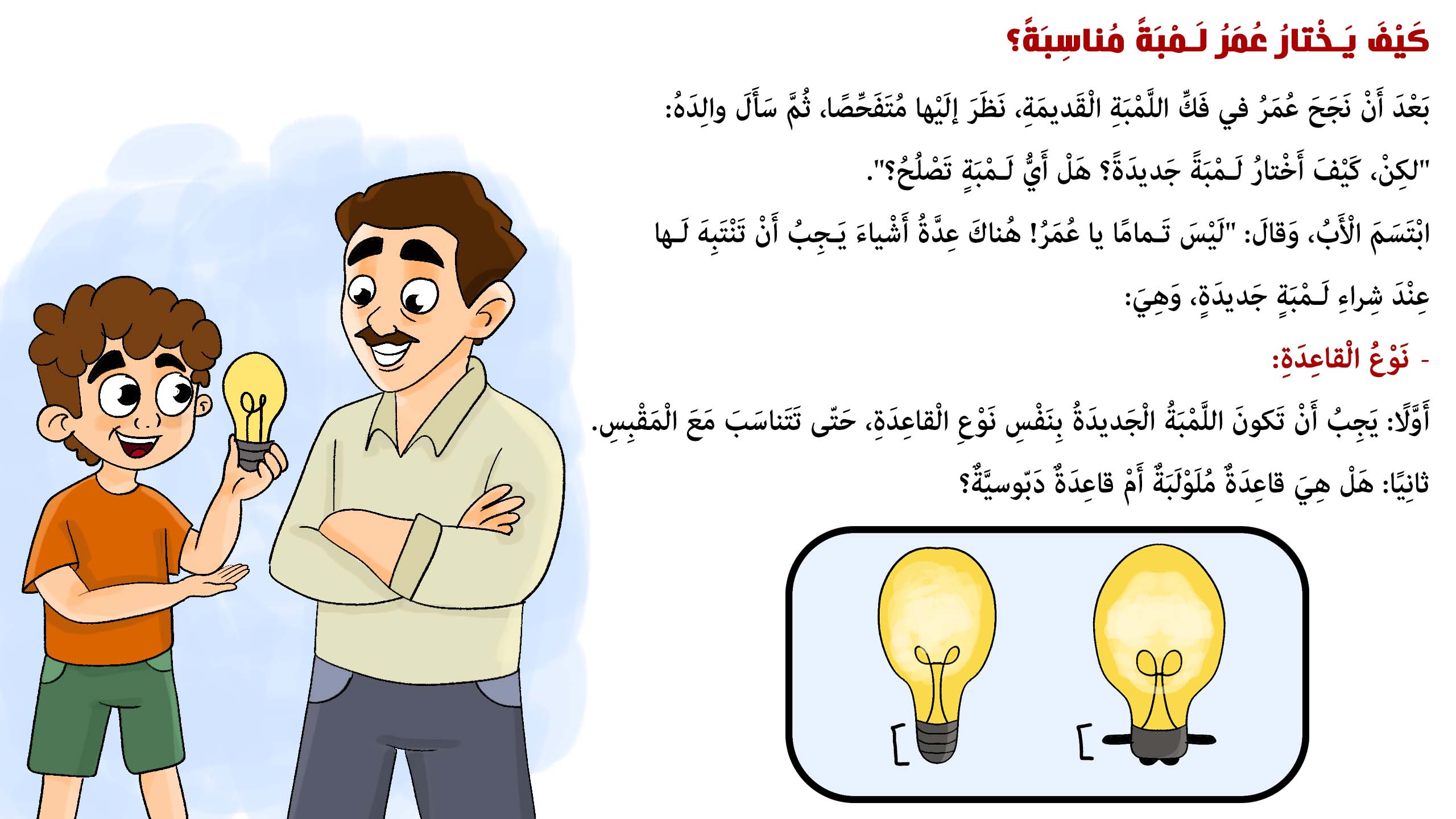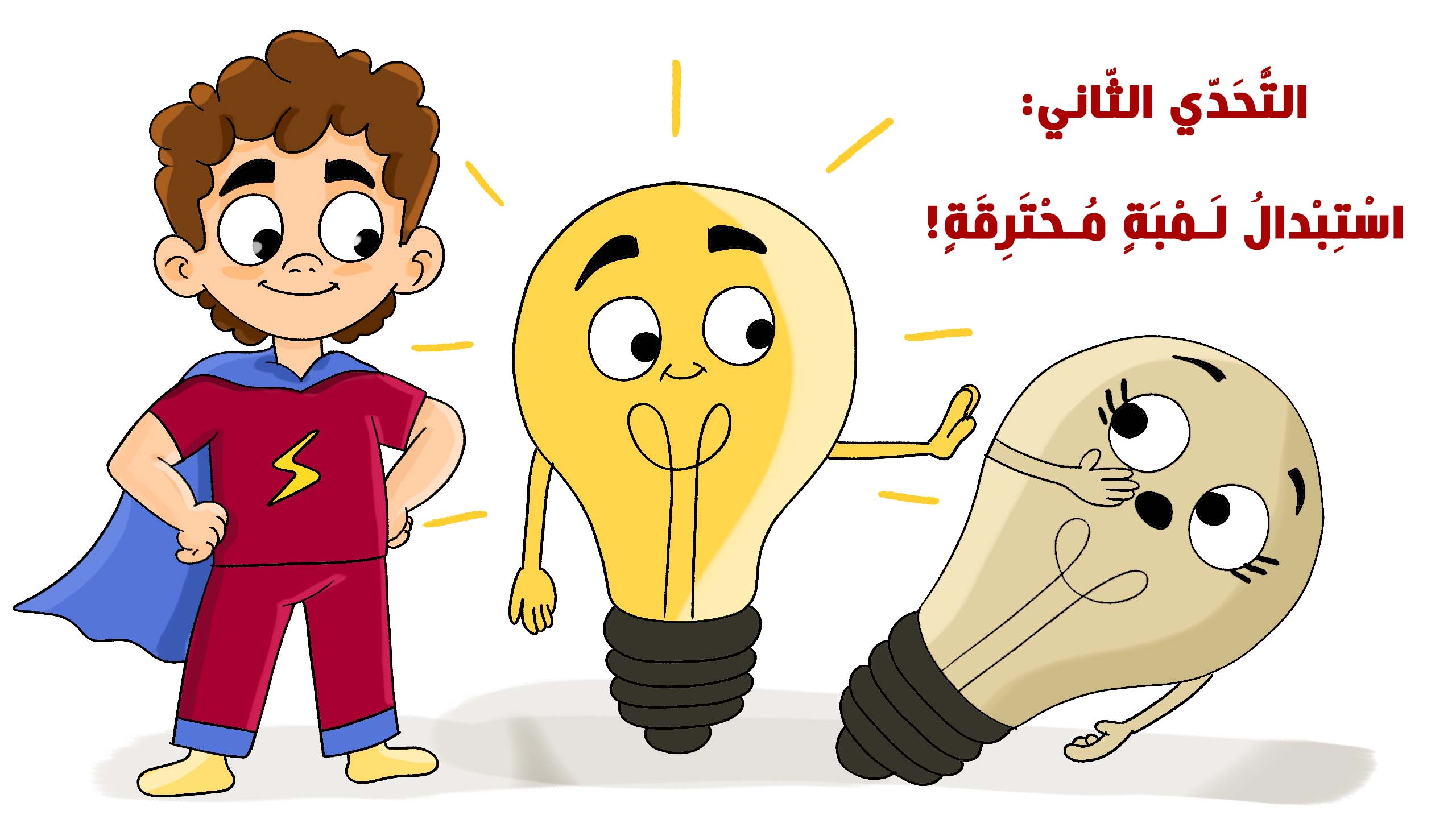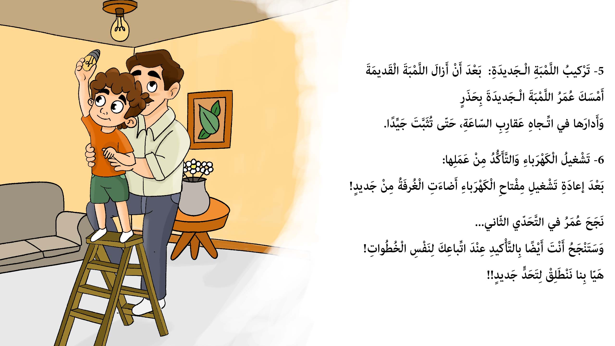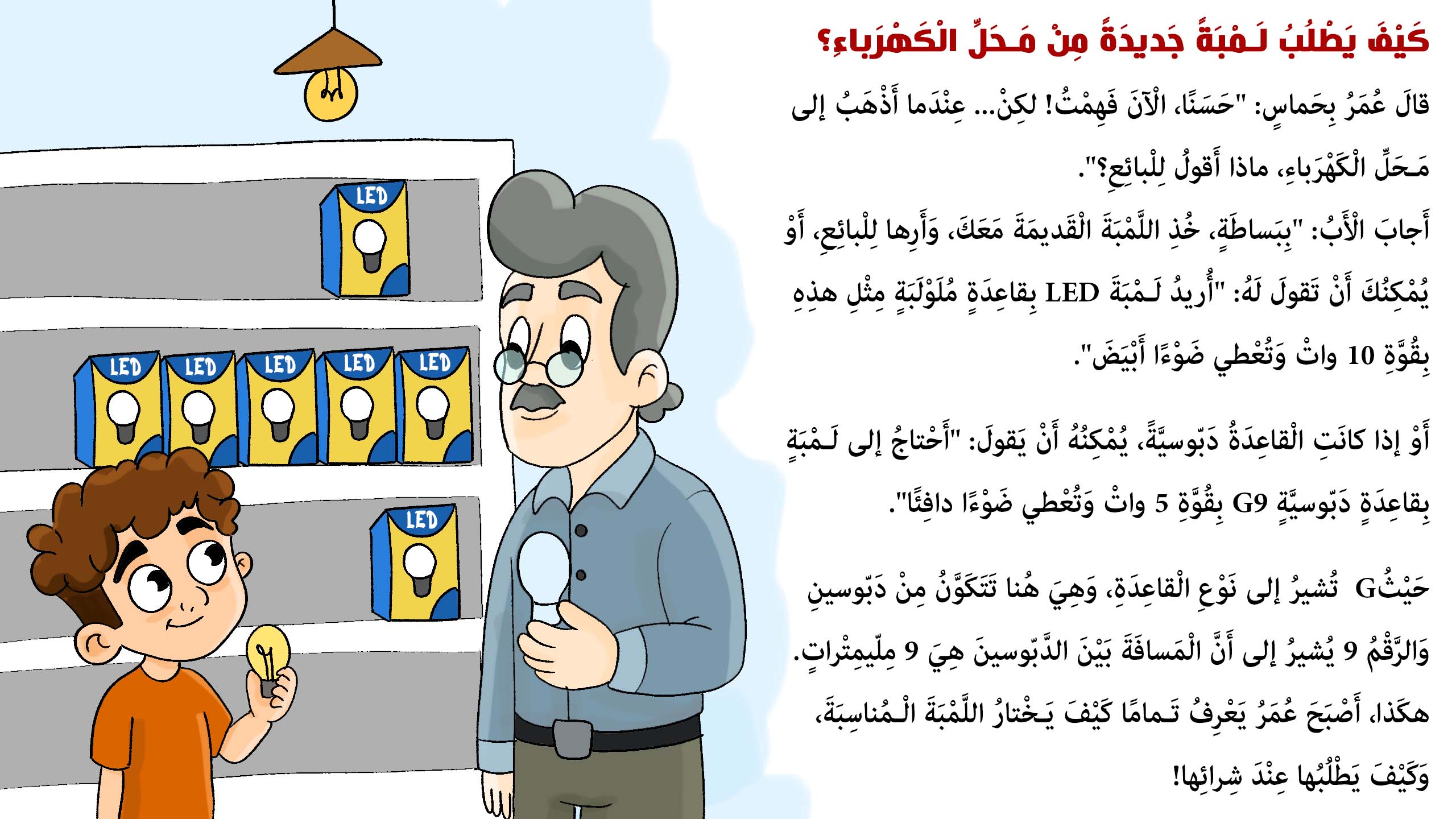 انطلق مع عمر في مغامرة تعليمية وممتعة لاستبدال لمبة محترقة! خطوة بخطوة، تَعلَّم كيف تختار وتغيّر اللمبة بأمان وذكاء!