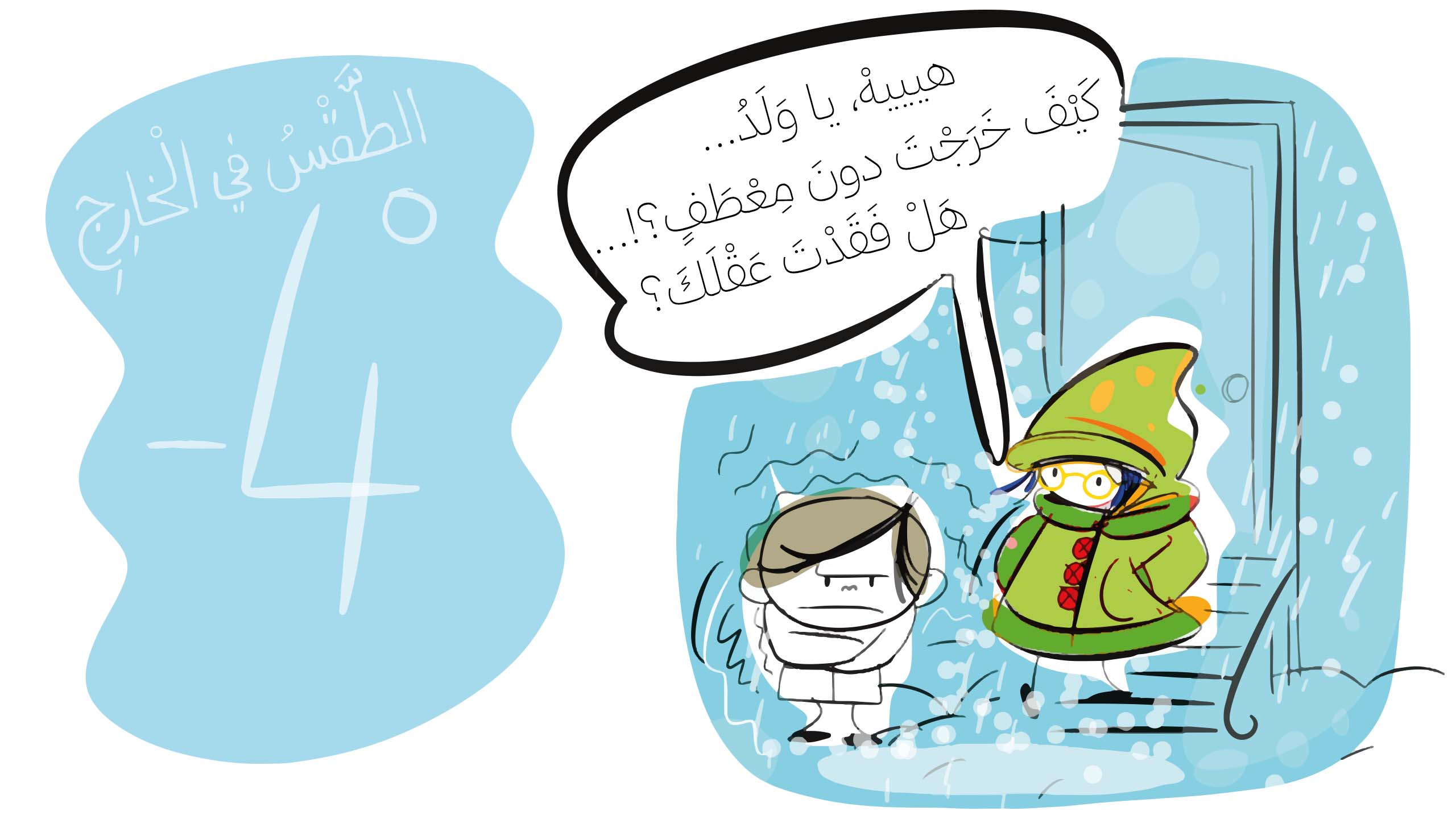 لا تَدَعْ جودي تَـخْرُجُ دونَ مِعْطَفٍ.