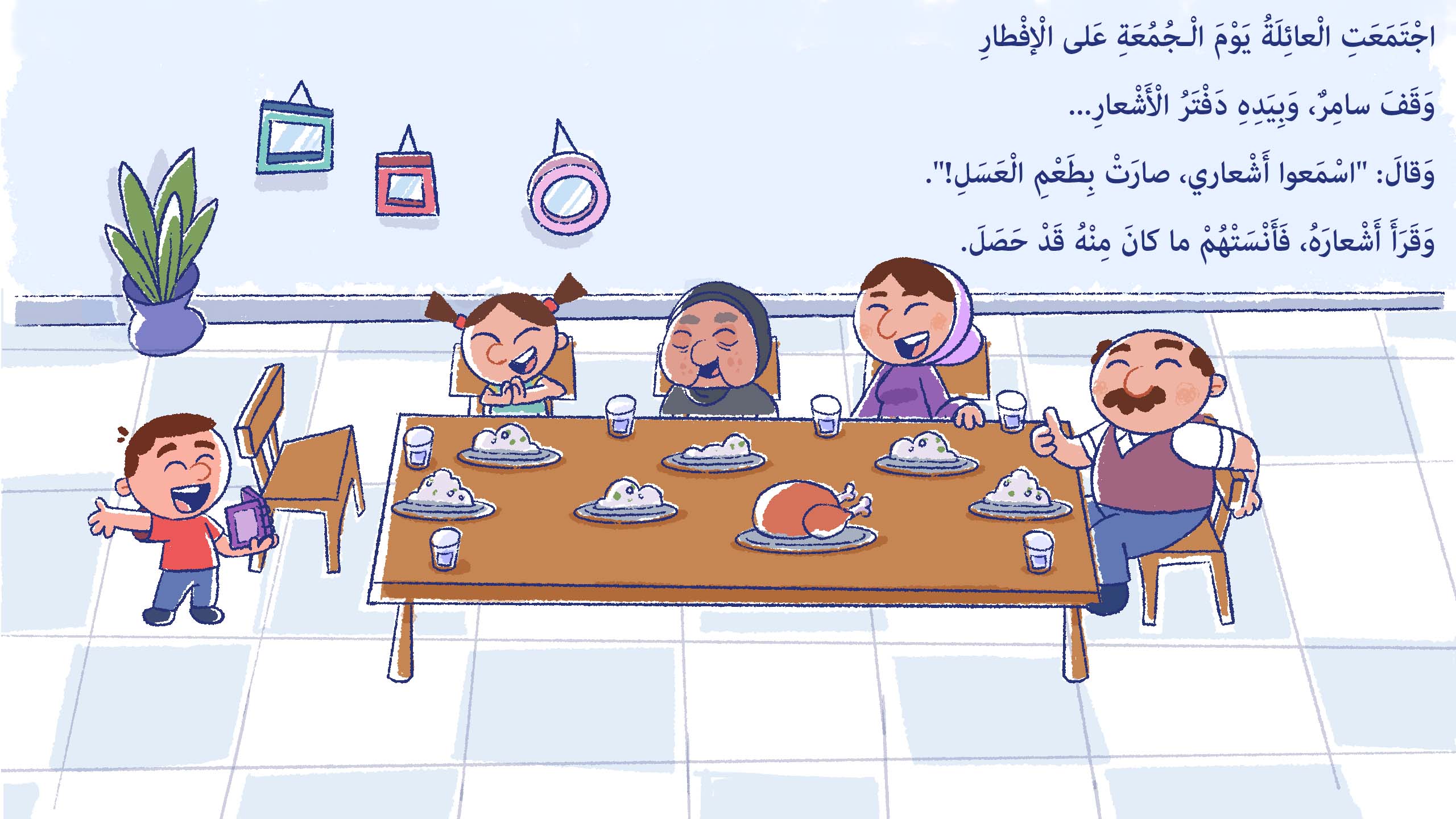 اكتشف سرًّا تحت المخدة! رحلة سامر من القصائد الطريفة إلى كلمات تشفي القلوب، وتعلّم كيف أن الكلمة الجميلة تخلق حبًّا وسلامًا في كل بيت!